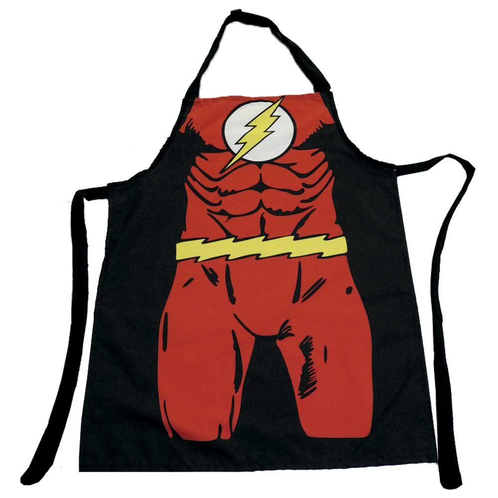 Delantal Flash, Elaborado en tela anti fluido, estampado en sublimación con tinta  de calidad que evita la perdida de color, perfecto para realizar cualquier labor, la tiranta del cuello trae trabilla la cual permite ajustar el delantal a la altura deseada, la medida del delantal es de 75 cmts de Largo por 55 cmtrs de Ancho, es talla única y un producto 100%  Colombiano.