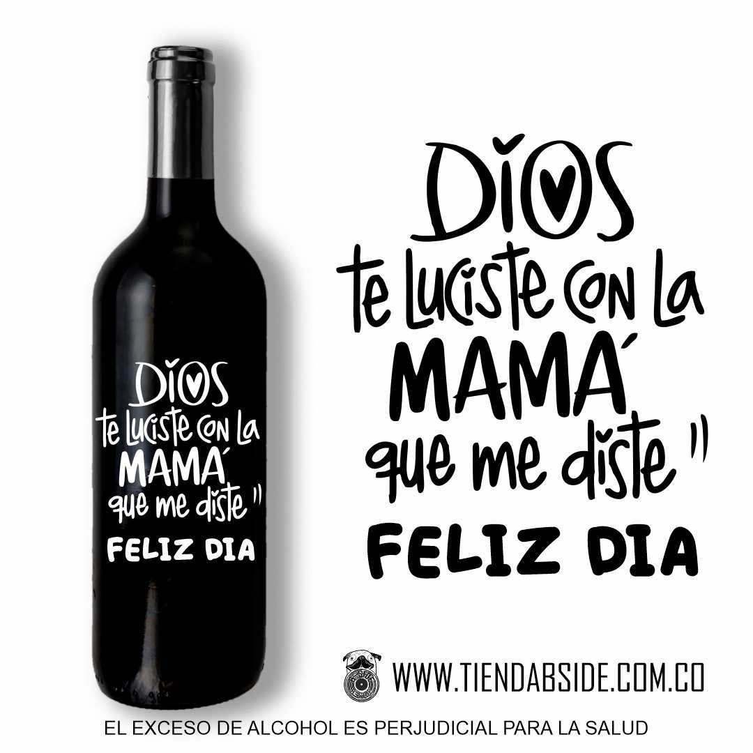 Botella de Vino tinto, vino blanco o Rosado de 750 ml con Mensaje para Mamá.   Regala un detalle Único y diferente…