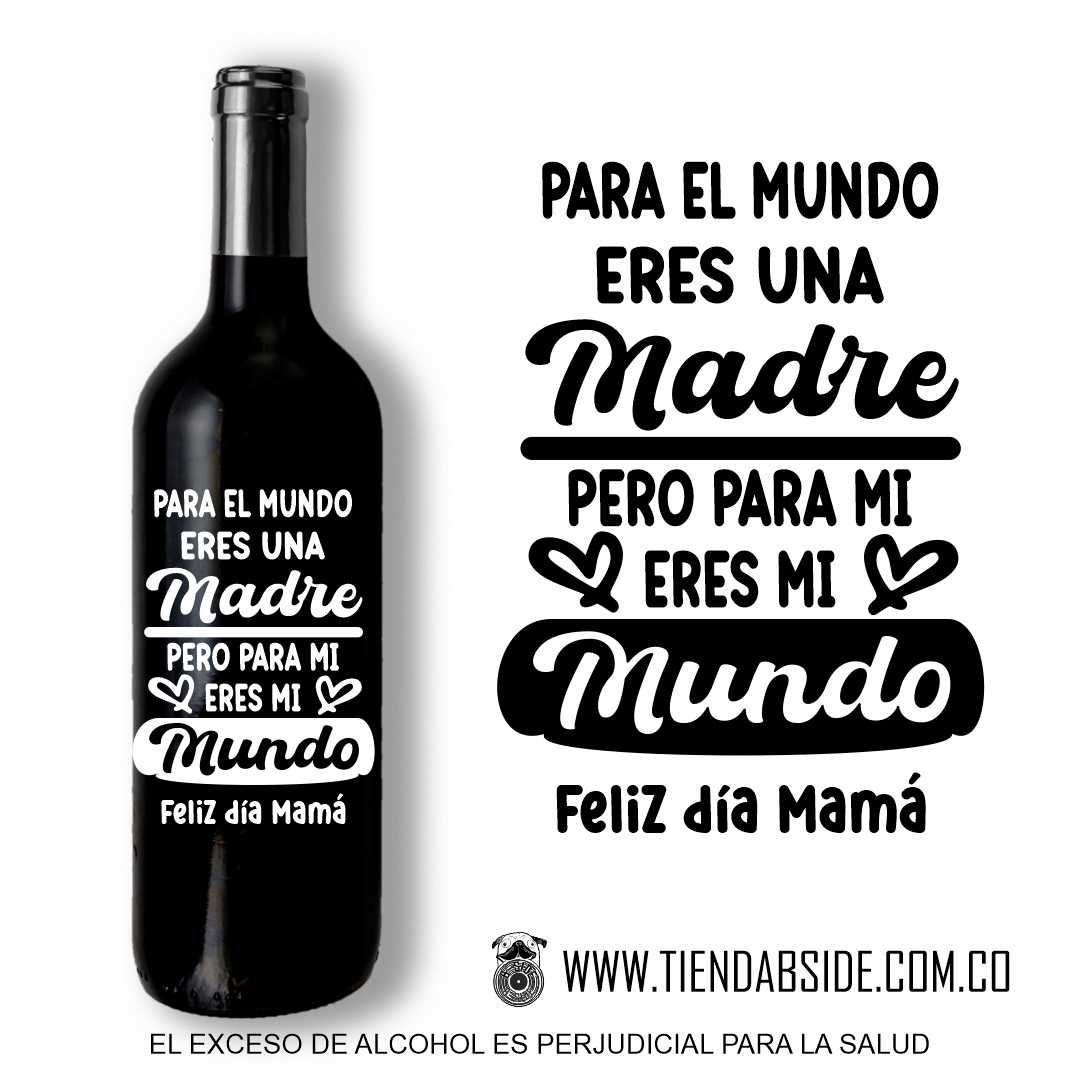 Botella de Vino tinto, vino blanco o Rosado de 750 ml con Mensaje para Mamá.   Regala un detalle Único y diferente…