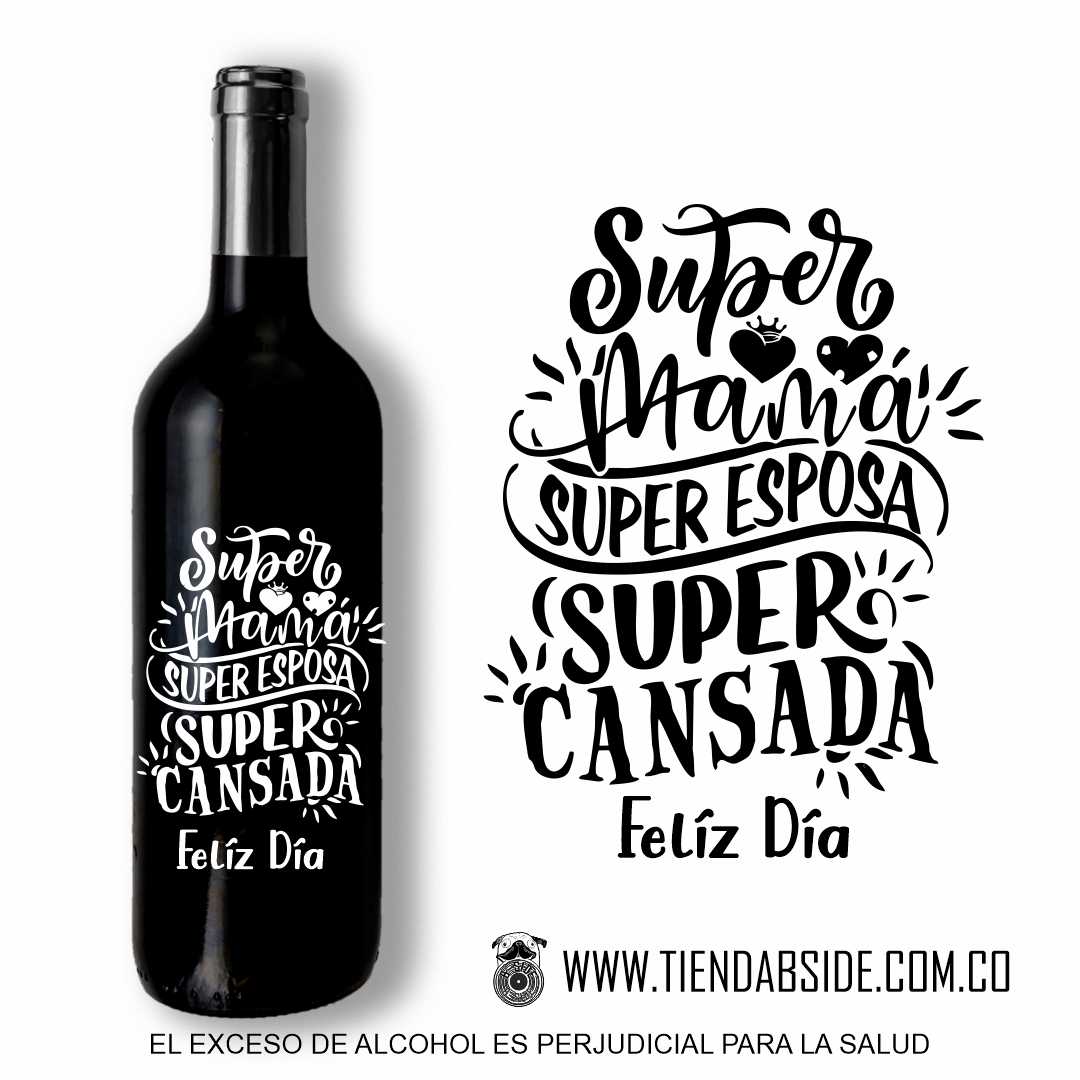 Botella de Vino tinto, vino blanco o Rosado de 750 ml con Mensaje para Mamá.   Regala un detalle Único y diferente…